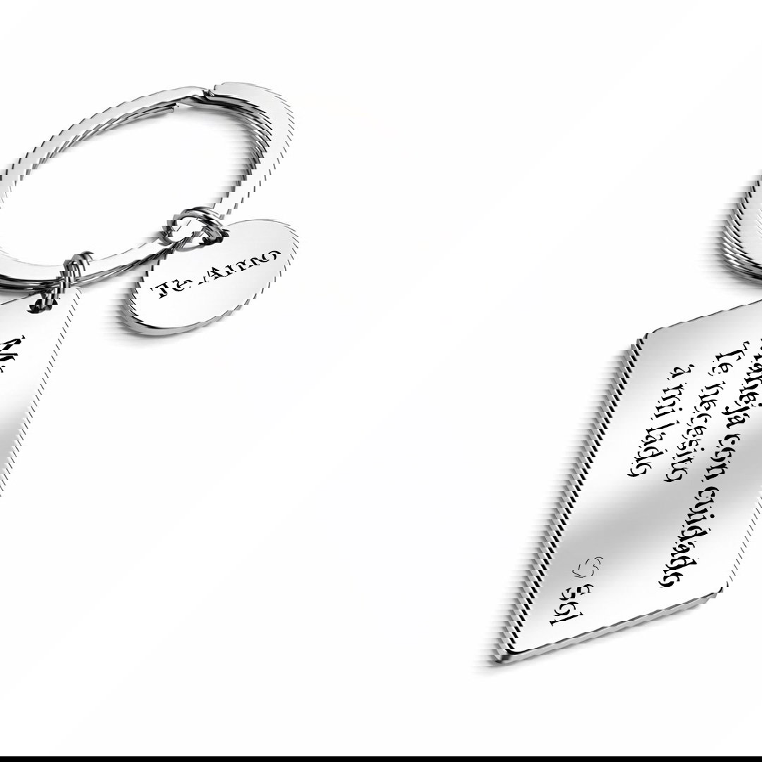 Un llavero personalizado que incluye un grabado en ambas caras con: