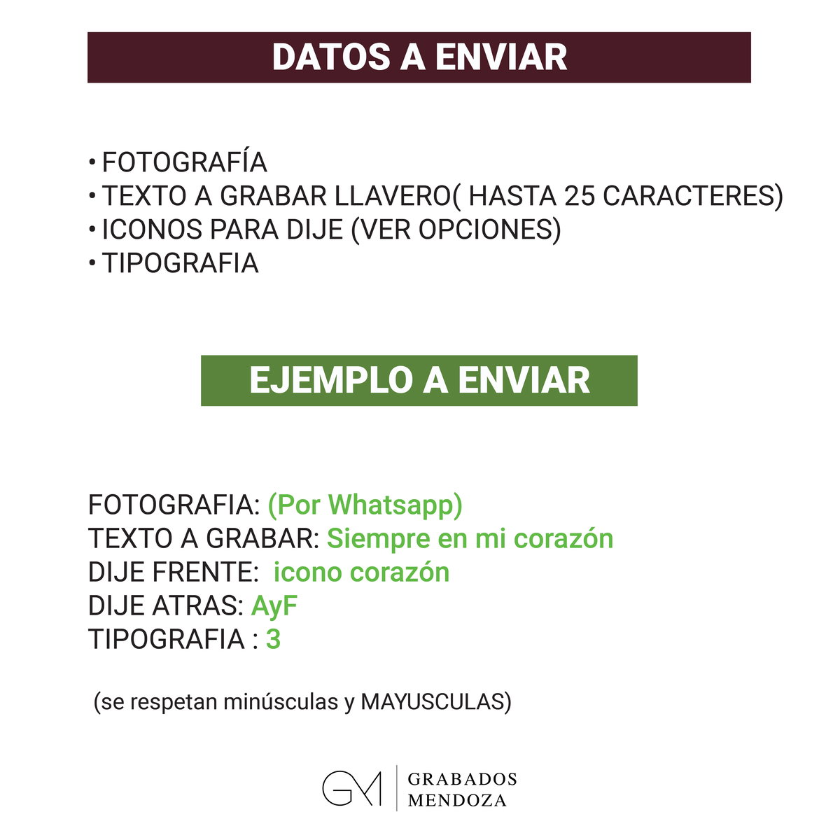 3) envíanos la dedicatoria o frase corta para la parte trasera.