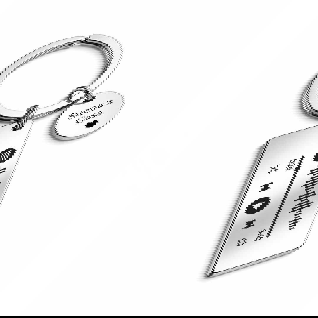 Un llavero personalizado que incluye un grabado en ambas caras con: