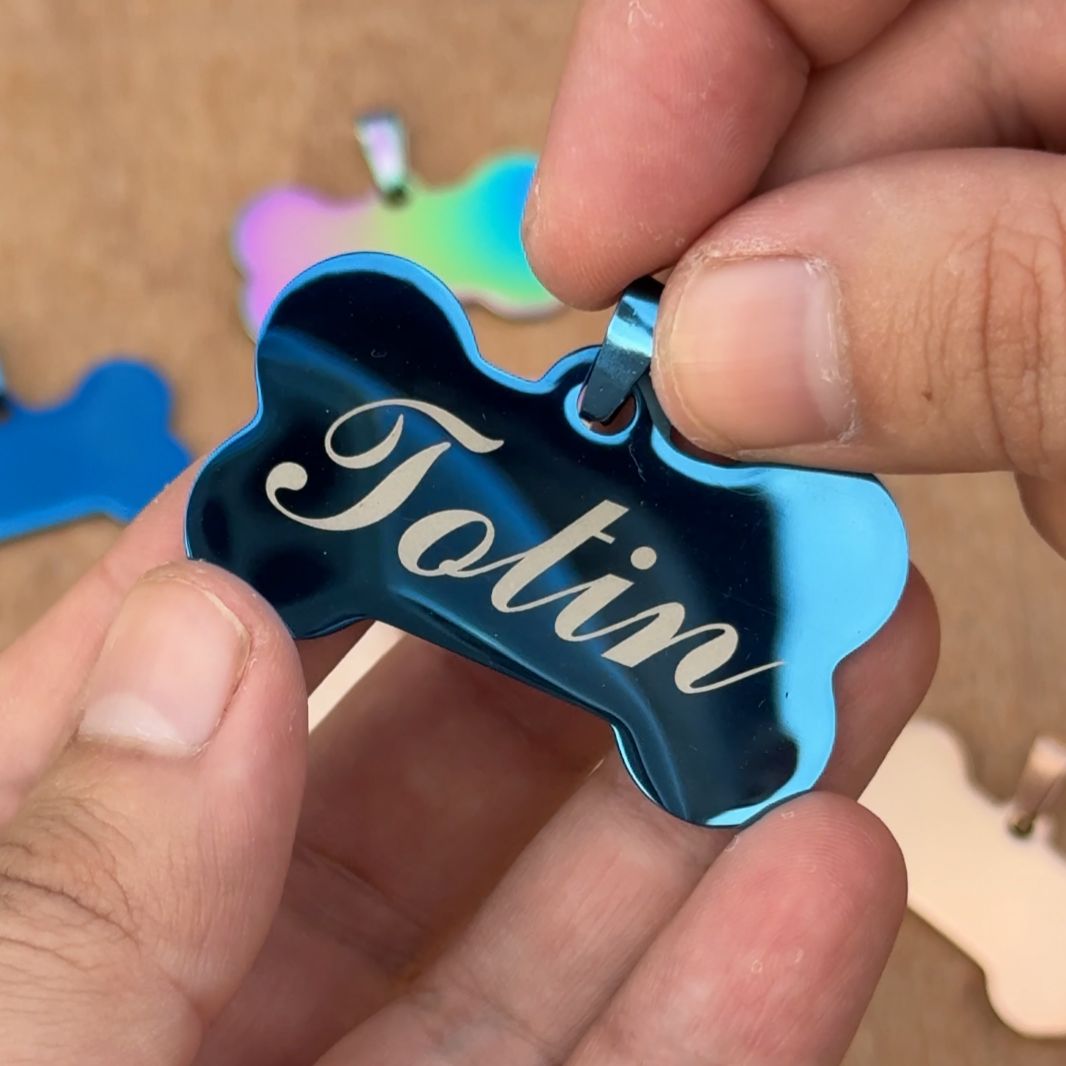 Plaquita en Acero quirúrgico personalizable, incluye el grabado de ambas caras con: