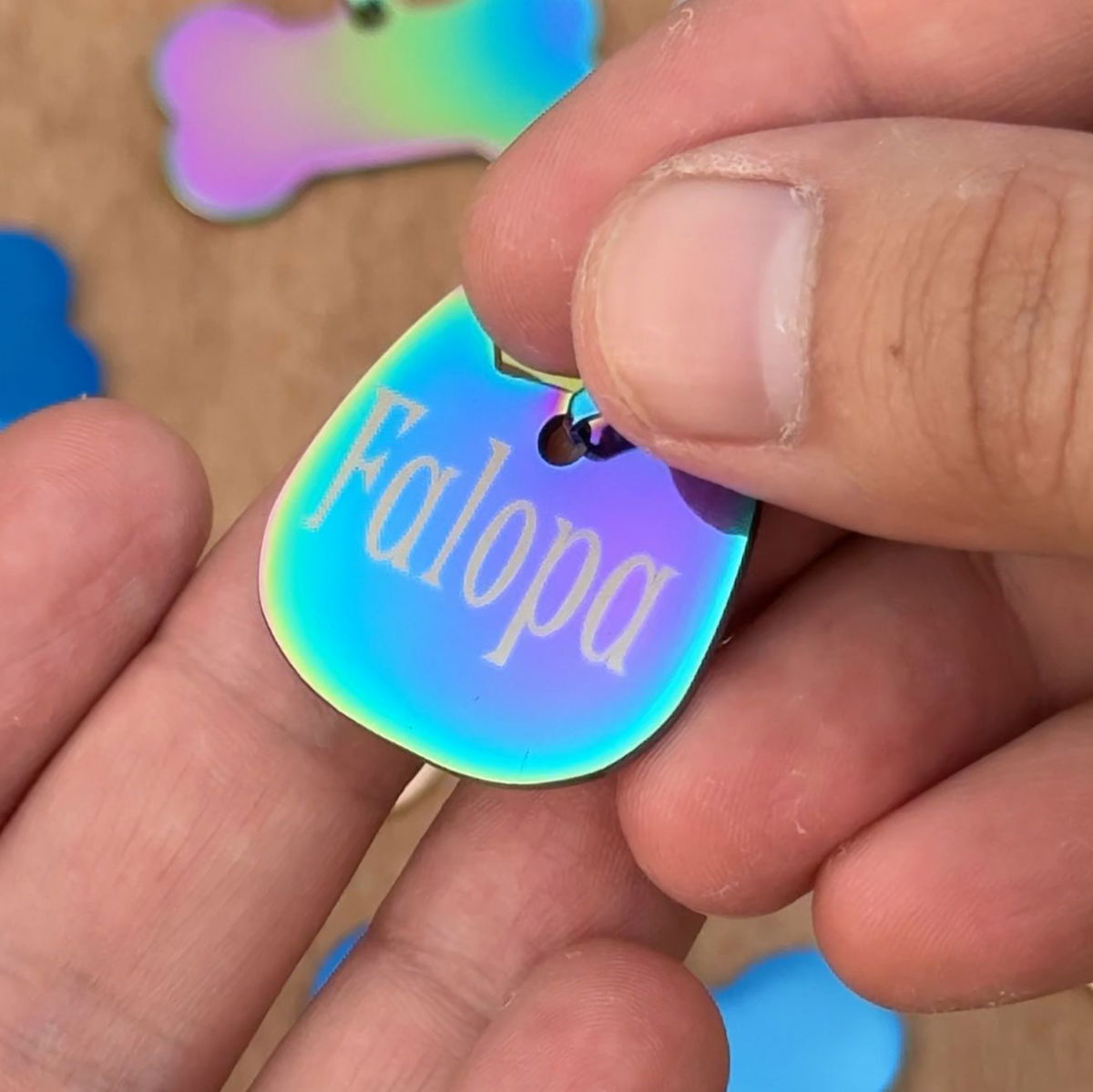 Plaquita en Acero quirúrgico personalizable, incluye el grabado de ambas caras con: