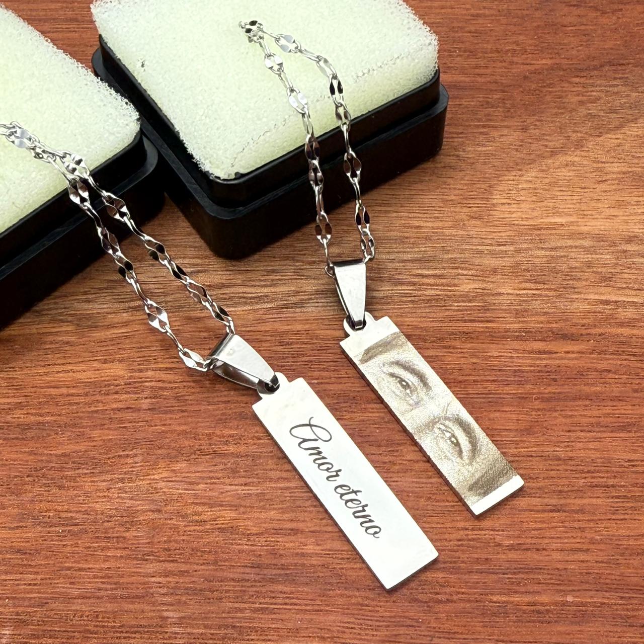 Dije Rectangular en Acero quirúrgico personalizable, incluye caja + cadena + grabado de ambas caras con: