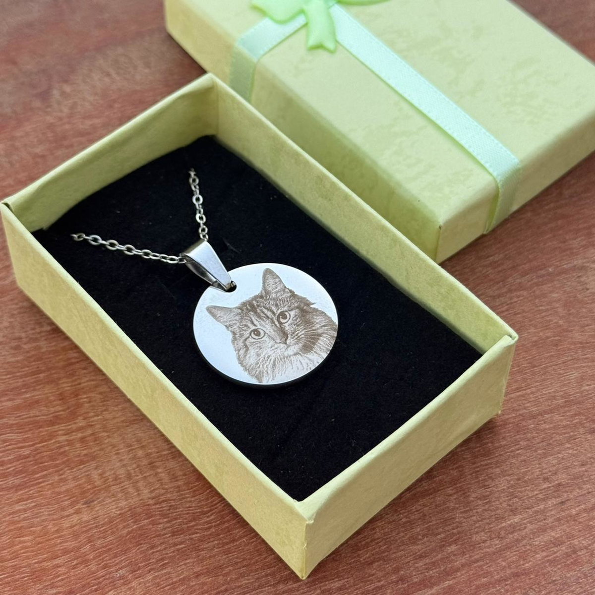 El precio publicado es por un dije circular+ grabado en ambas caras + caja - cadenita (grabado: fotograbado y frase de hasta 12 caracteres)