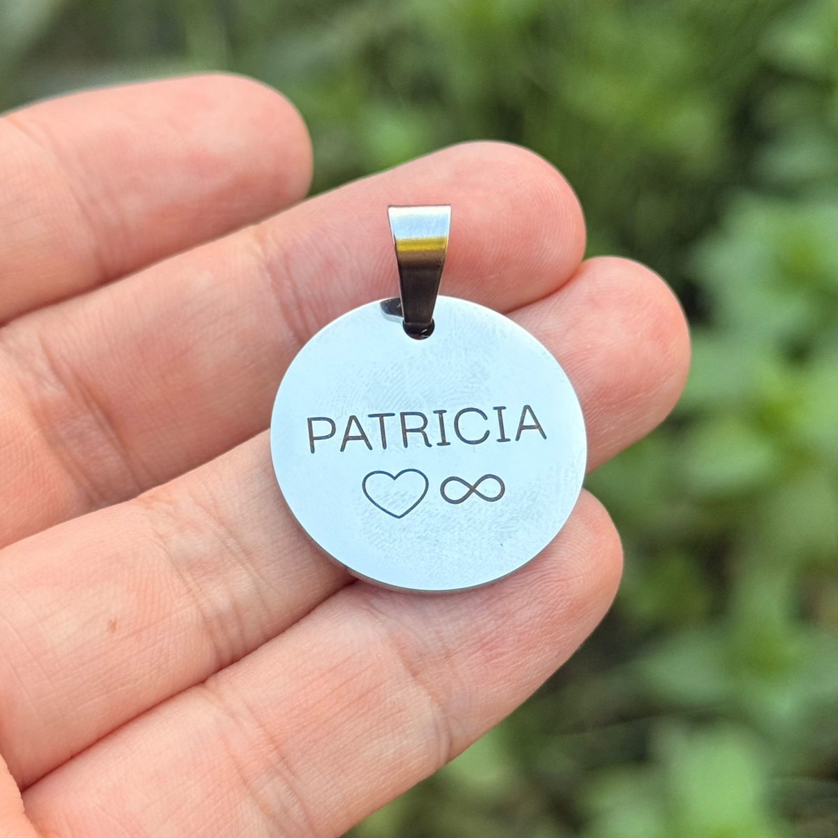 Dije Circular en Acero quirúrgico personalizable, incluye caja + cadena + grabado de ambas caras con: