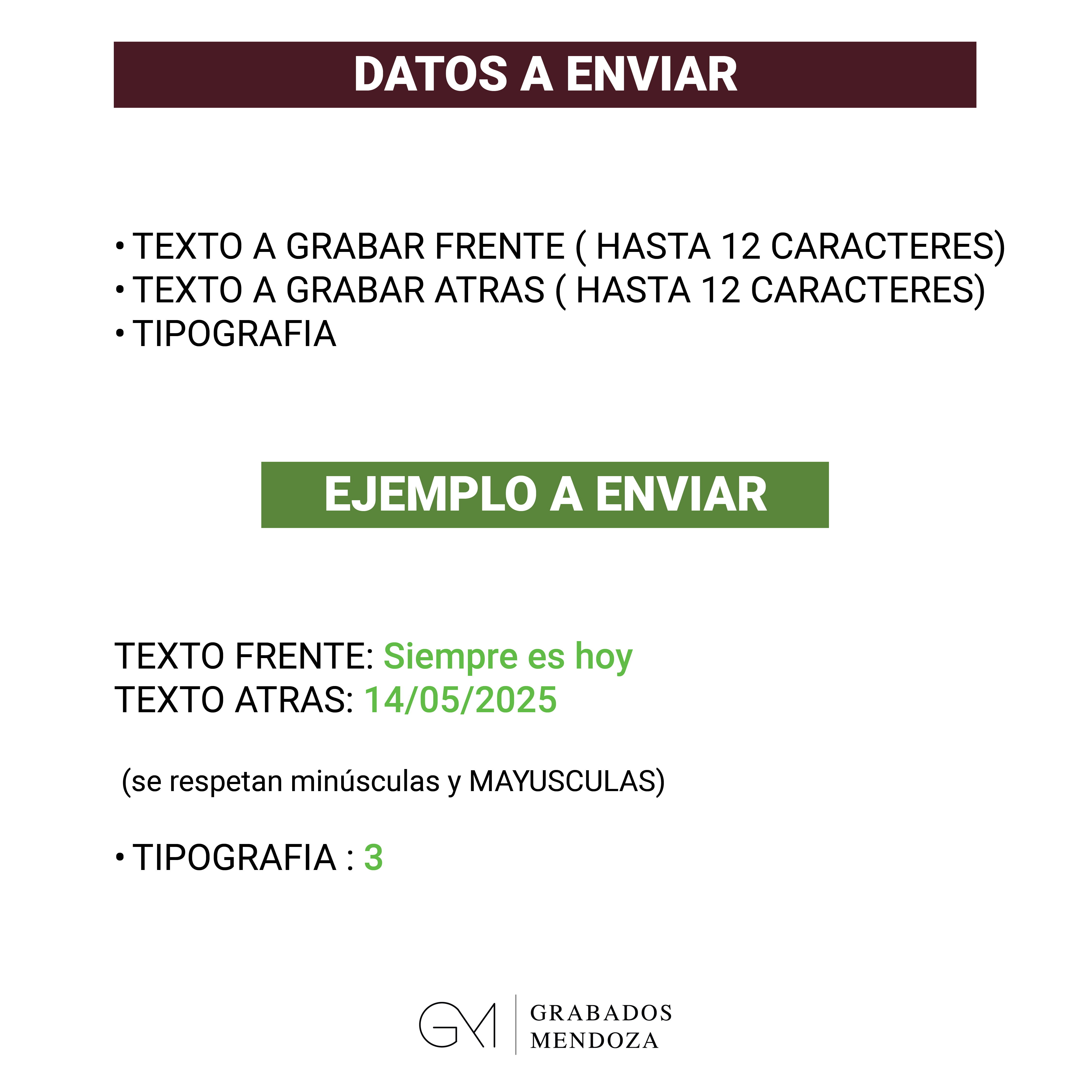 Si querés nos escribis por Whatsapp con tu numero de pedido o te contactaremos nosotros a la brevedad para recibir indicaciones de lo que querés grabar. Una vez tomada toda la información, preparamos un boceto digital y te lo enviamos para tu aprobación. Es la instancia de realizar ajustes, cambios de letra, etc.
