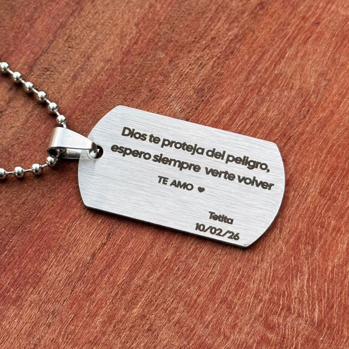 Dije Militar en Acero quirúrgico personalizable, incluye caja + cadena + grabado de ambas caras con: