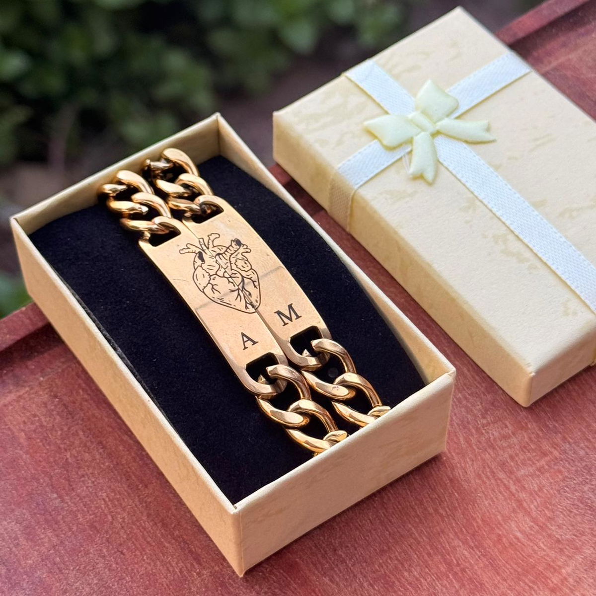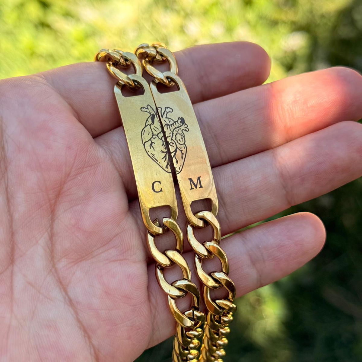 El precio publicado es por DOS pulseras + grabado en ambas caras (Icono Corazón + iniciales y fecha)