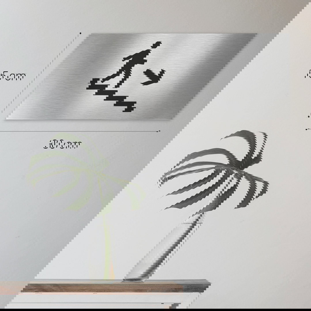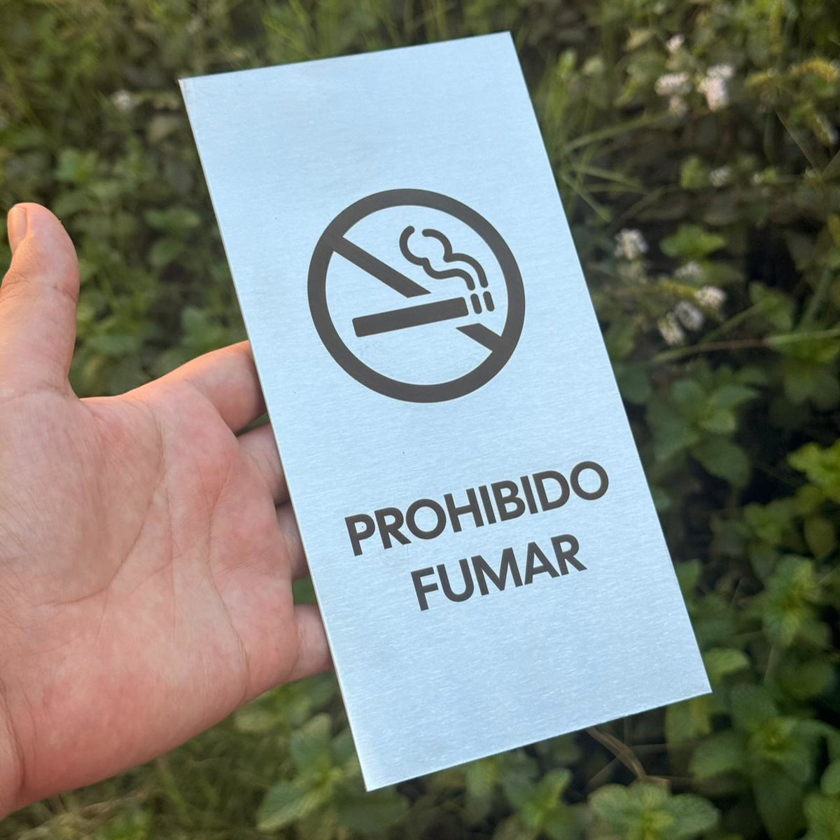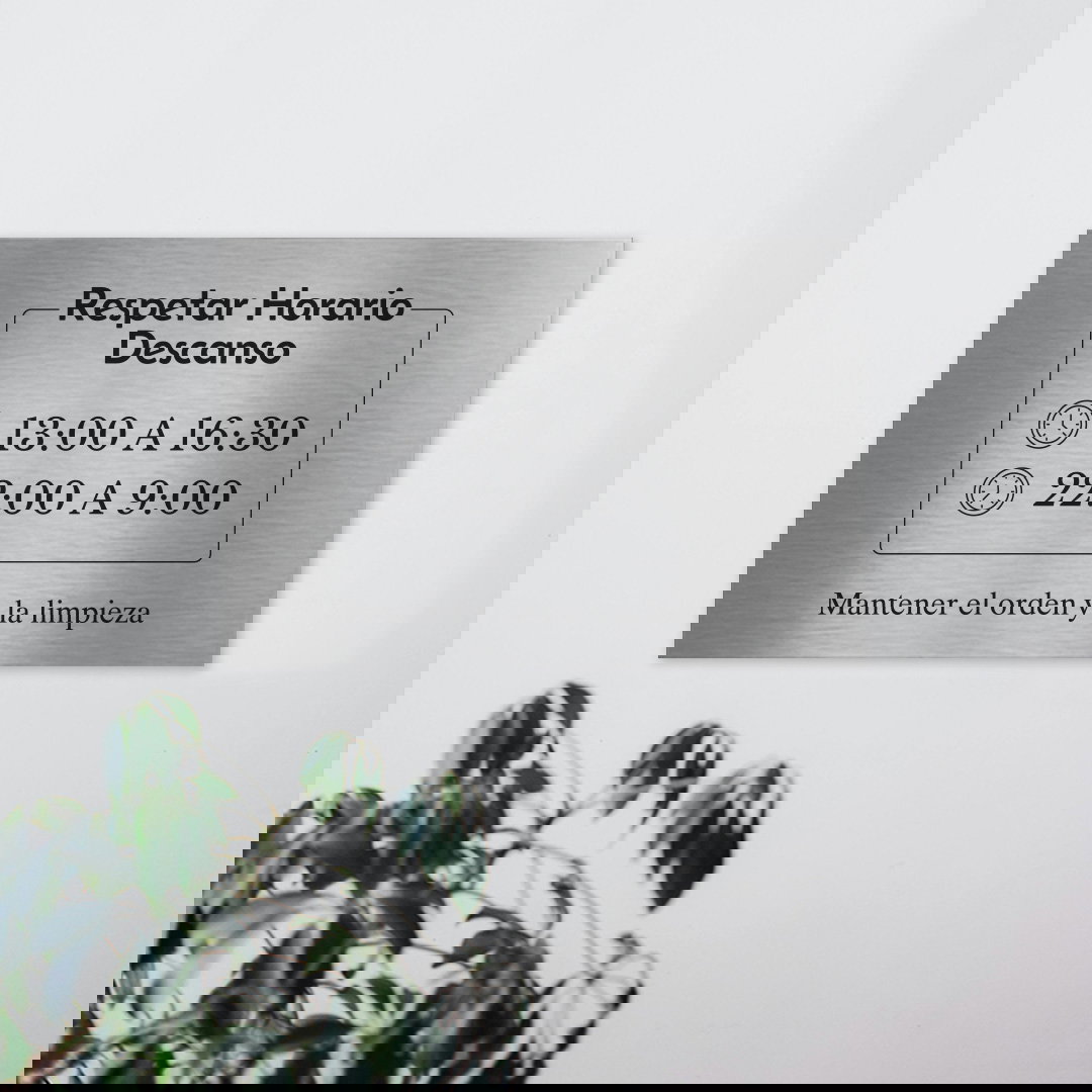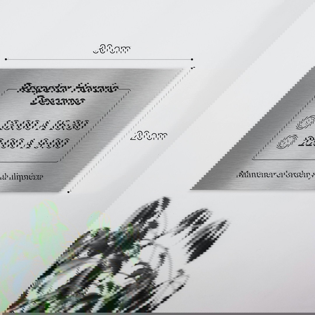 Placa de acero inoxidable esmerilado, con grabado en una de sus caras con: