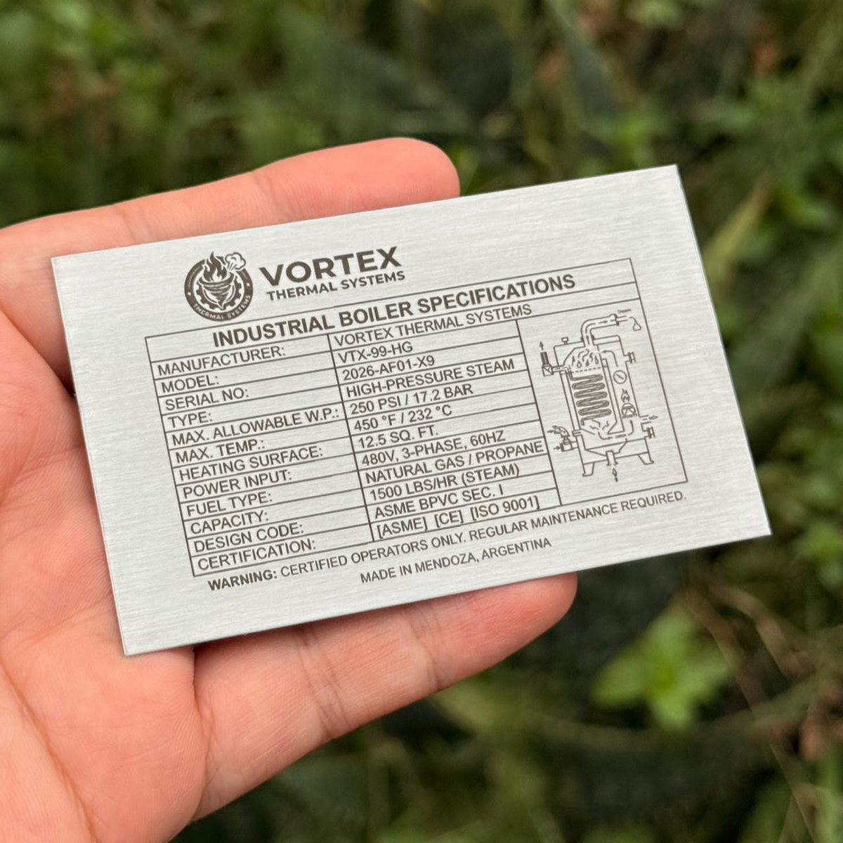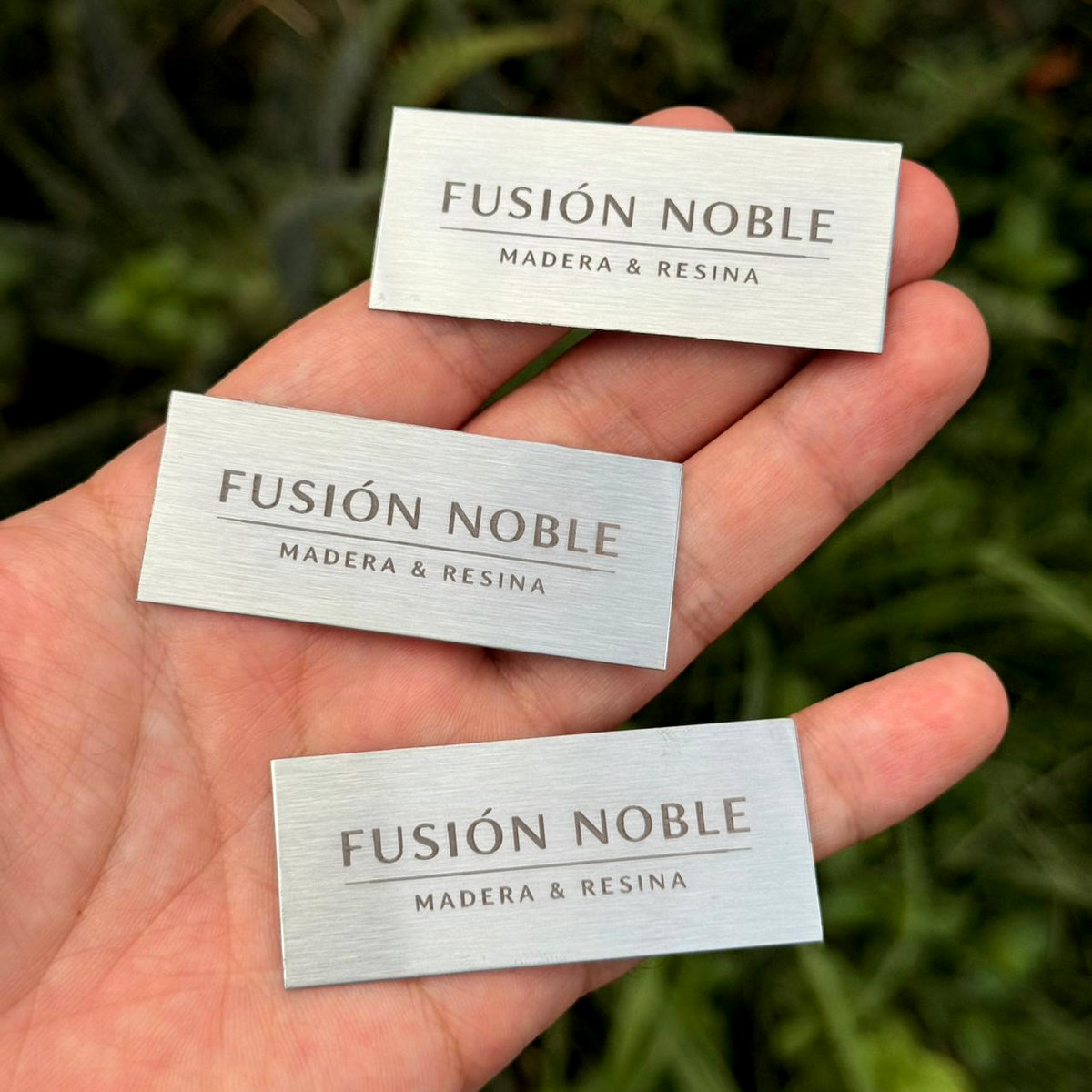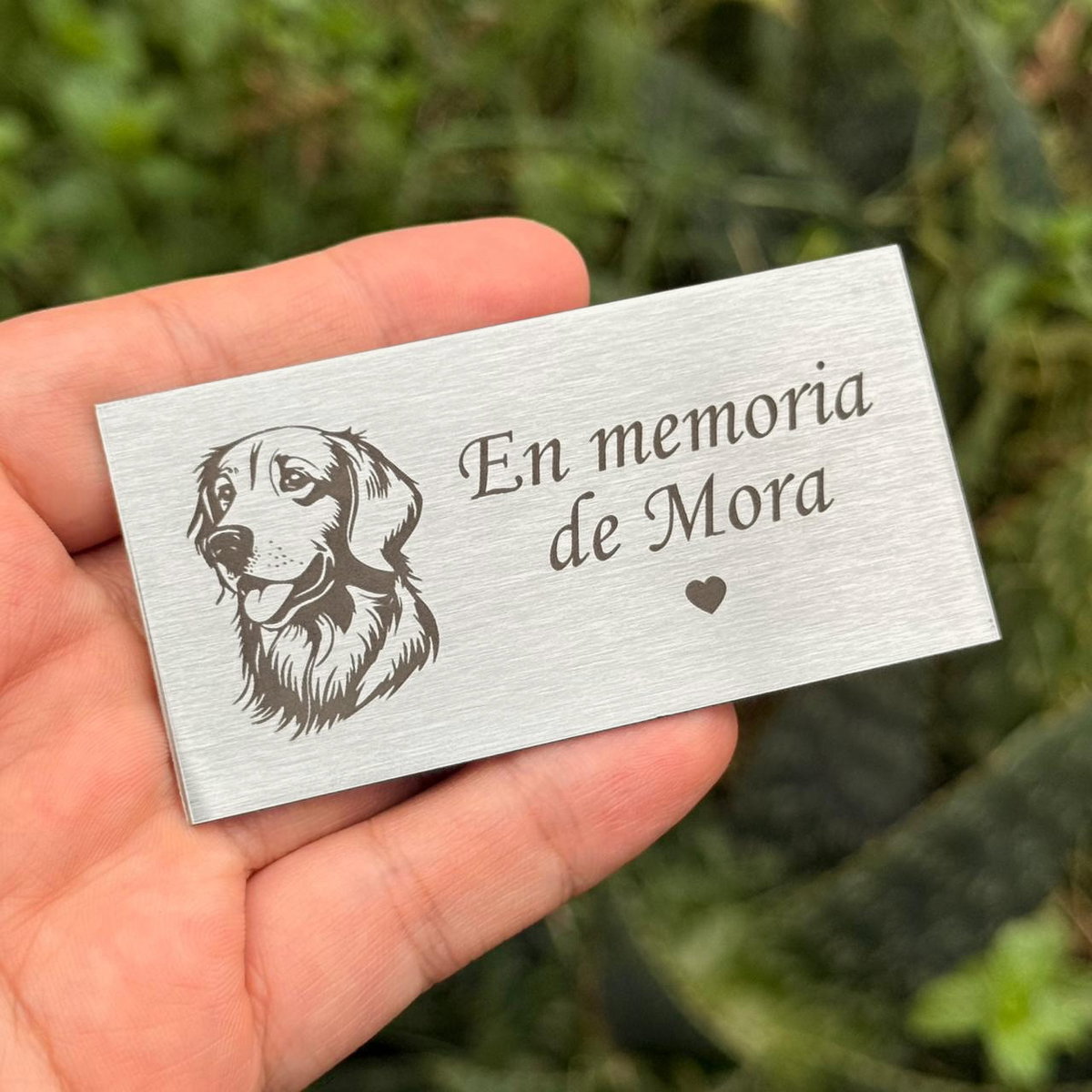 Placa de acero inoxidable esmerilado, con grabado en una de sus caras con: