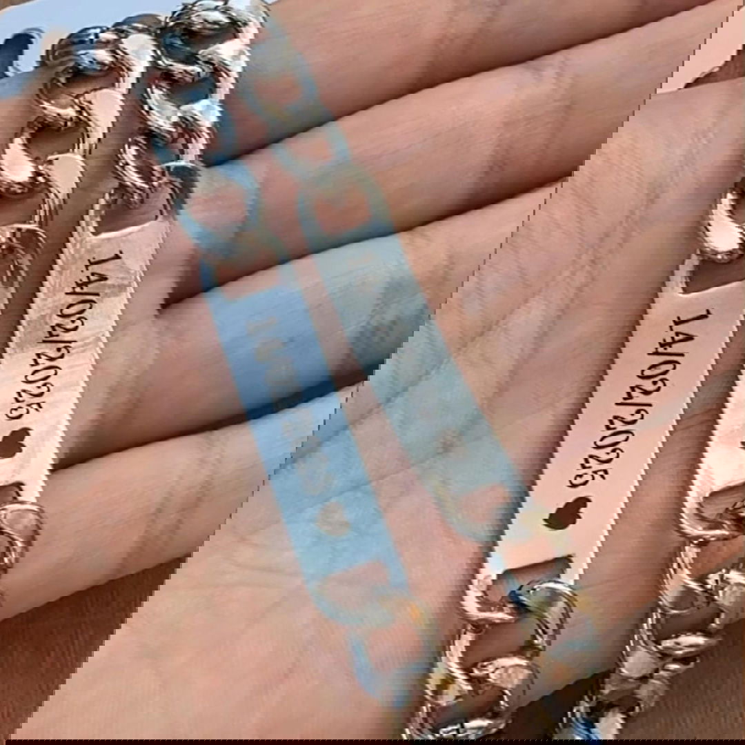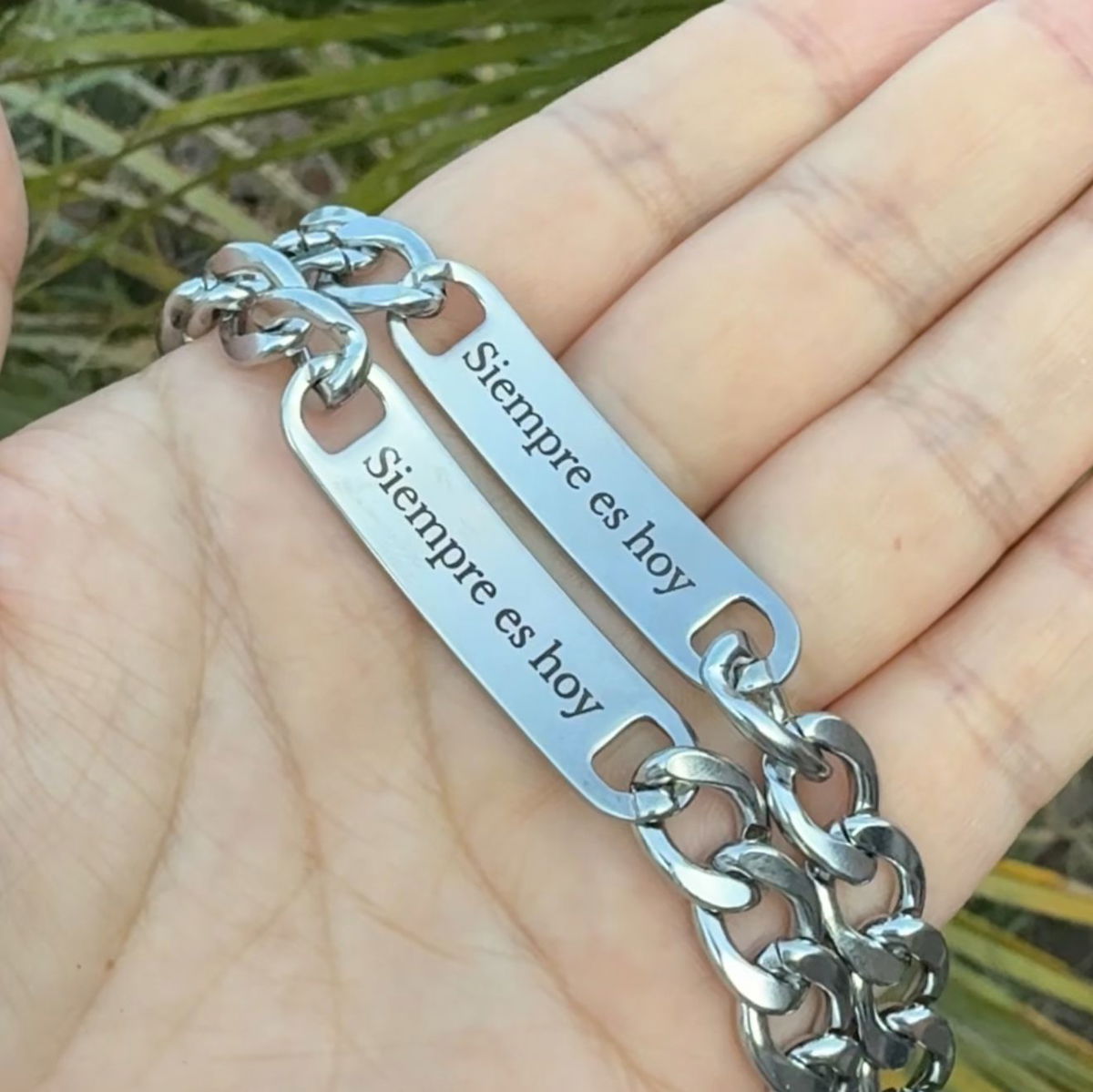 Pulsera en Acero quirúrgico personalizable, incluye el grabado de ambas caras con: