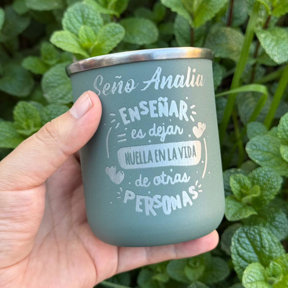 Una mate de acero + bombilla personalizado que incluye un grabado con: