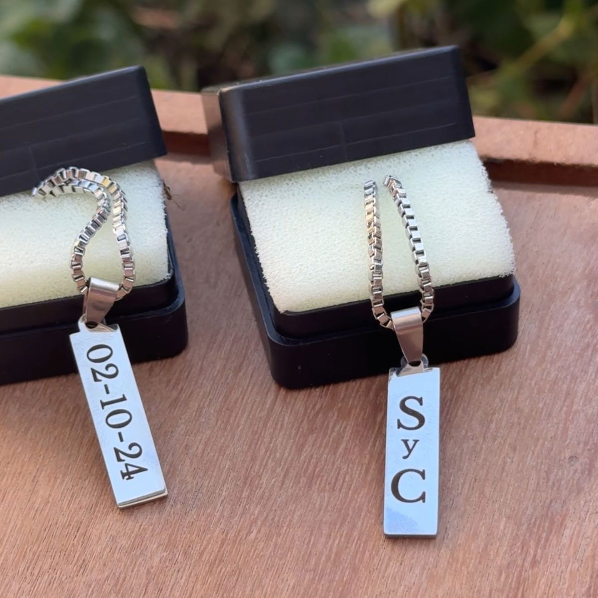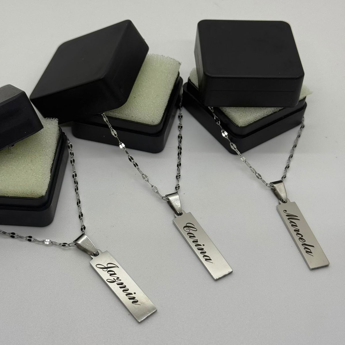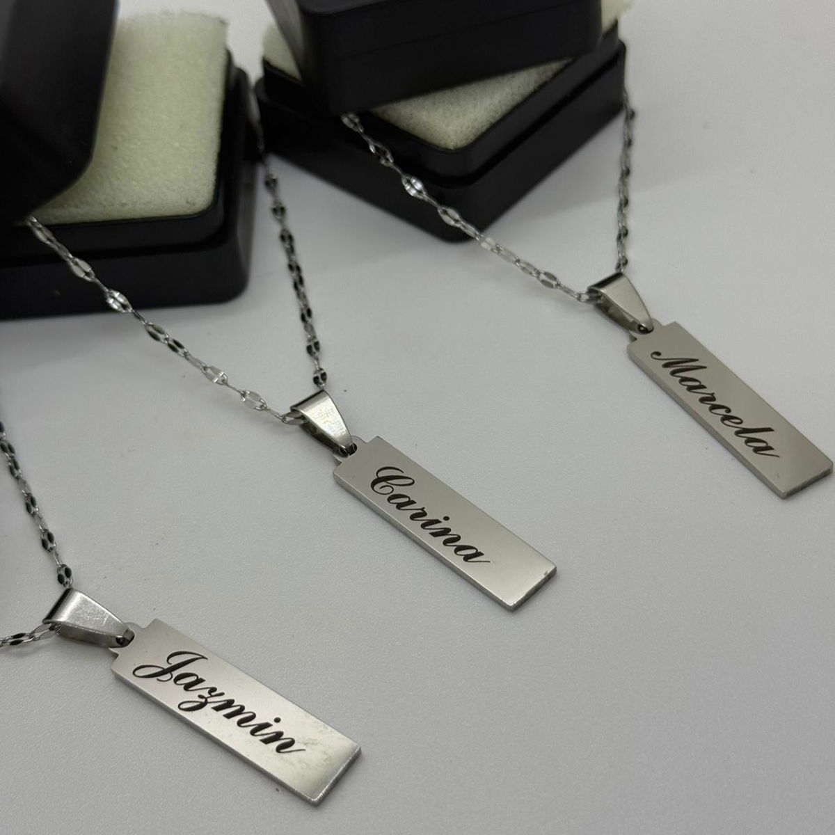 El precio publicado es por un dije rectangular+ grabado en ambas caras + caja + cadenita (grabado: frase de hasta 10 caracteres por cara)