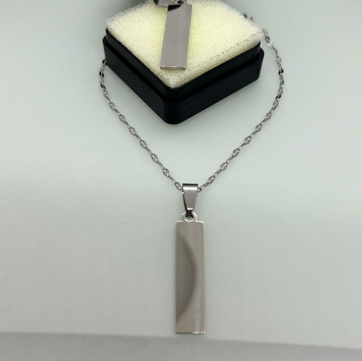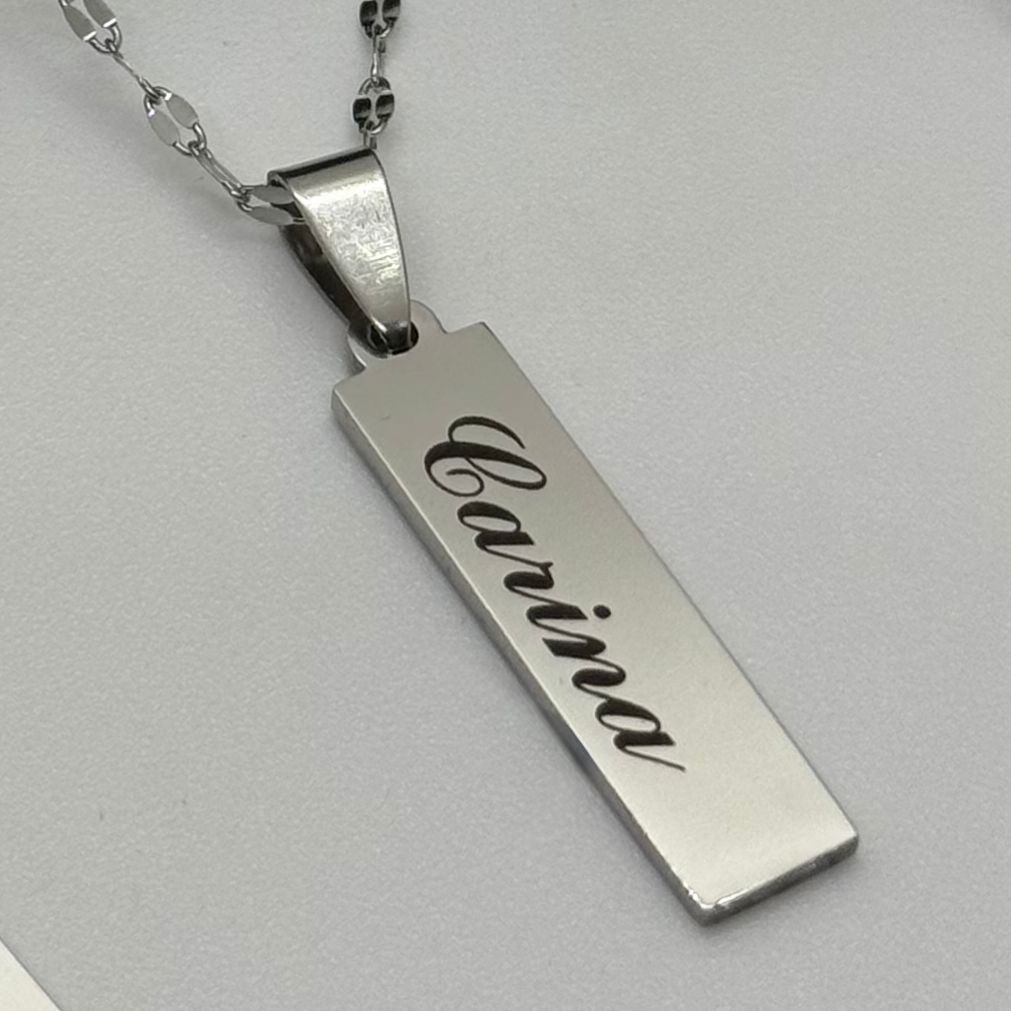 Dije Rectangular en Acero quirúrgico personalizable, incluye caja + cadena + grabado de ambas caras con: